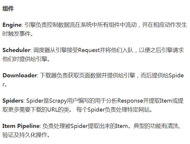 下面是Scrapy的架构,包括组件以及在系统中发生的数据流的概览(红色箭头所示)。 之后会对每个组件做简单介绍,数据流也会做一个简要描述。