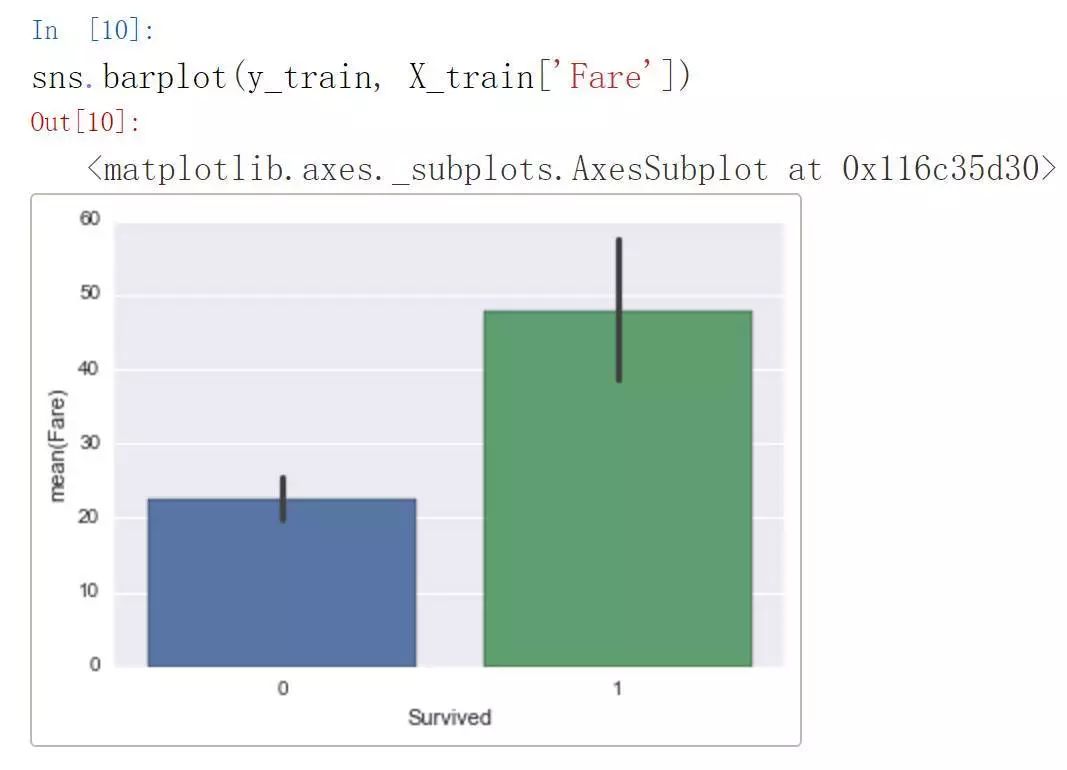 我们可以很清楚地看到,那些生还者相比遇难者的平均票价要高得多,因此把票价当成重要特征可能是合理的。