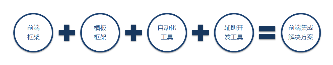 前端团队发展大多会经历规范设计、技术选型、系统拆分、性能优化等阶段,我们将其中的技术需求总结为前端集成解决方案。通常,一套完整的前端技术解决方案包括四个方向: