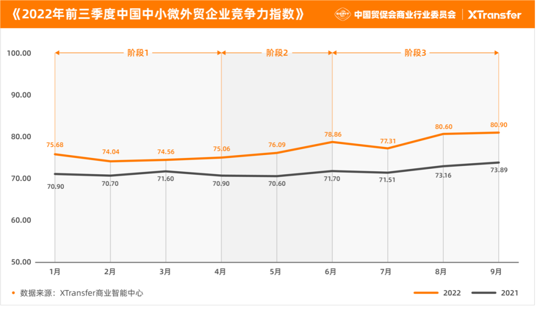 XTransfer:2022年前三季度中国中小微外贸企业竞争力指数