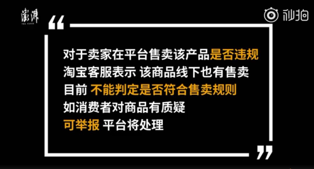 淘宝客服称,消费者若质疑产品售卖违规,可举报。