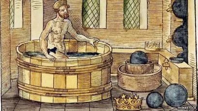 公元前245年,古希腊叙拉古城的赫农王命令工匠制作一顶纯金的王冠。工匠完工后,国王感觉不放心,对着重量没变的王冠左看看,右看看,总怀疑工匠把里面的金子换成其他材料了。可是,没证据又不好明说。跟大臣们说起此事,他们也只能面面相觑。于是,国王按一大臣的建议,请来了当时最有名的数学家阿基米德帮助鉴定。阿基米德看了半天,也没弄明白要怎么测。又冥思苦想了多日,还是没看出一丝端倪,便想泡个澡舒缓下心情。跨进装满水的浴盆后,他发现水的涨落似乎和他的站起坐下有关,而且坐下时还能感受到水向上对身体的托力,身体也随之变轻了。他恍然大悟,原来可以用测量固体在水中排水量的办法,来检测物体的体积。那也就能根据王冠的密度与体积之间的关系,来推测王冠是否造假了。