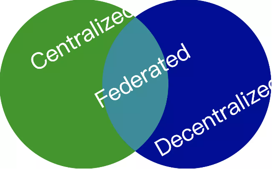 在中心化与去中心化(或者叫分布式)系统之间,还存在着联邦系统——即同时具有两者的属性