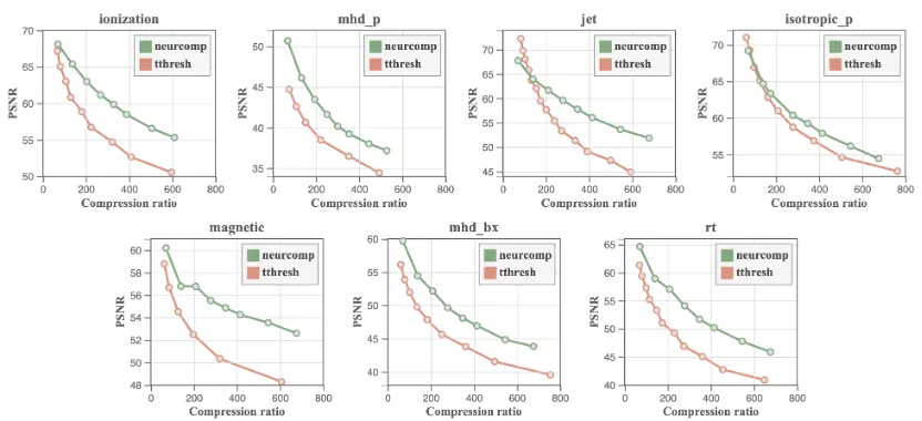 图 4 神经网络压缩技术与TTHRESH技术量化比较