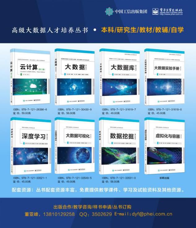 由刘鹏教授主编出版的“高级大数据人才培养丛书”和“大数据应用人才培养系列教材”,已经被各高校采用。