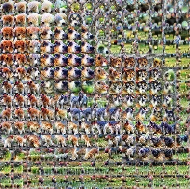 从网络中发现,识别狗时有好几个检测软塌塌的耳朵的检测器发挥了重要作用;而检测猫时就换成了尖耳朵的检测器