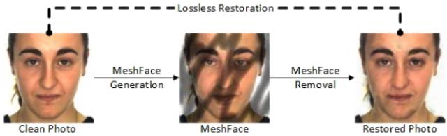 网纹人脸(MeshFace)提供了一种简单而且低廉的方式保护人脸信息,它是在清晰人脸图像上加随机的网纹状条纹,这些网纹状条纹的位置、波形、深浅都是随机的。这种随机的网纹会破坏人脸图像的部分信息,从而达到保护人脸身份的目的。网纹人脸图像已经被广泛应用到金融领域用于保护用户身份信息。