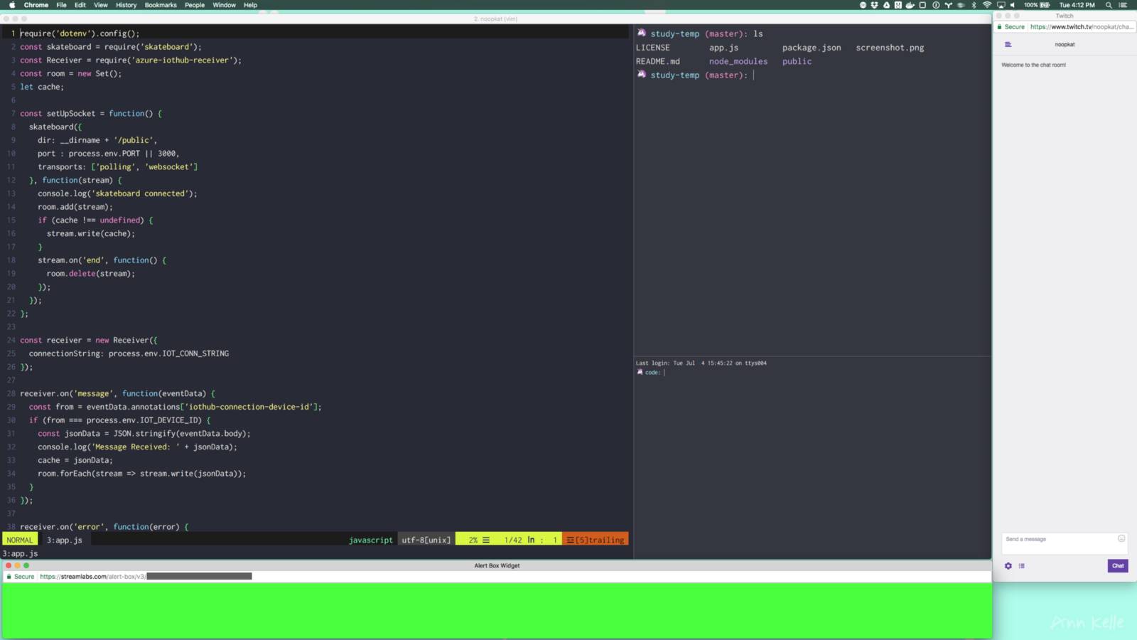 我第一次直播写代码是在去年七月份。我想要直播一下我在业余时间内为开源项目领域所做的工作,尽管在Twitch上的大部分直播都是关于游戏的。我比较擅长于NodeJS的硬件库方面的工作(尽管大部分项目都是自己的)。并且我在Twitch上曾经开启过一个房间了,那为什么我不继续做下去?我的栏目可以叫做:基于JavaScript的硬件开发。