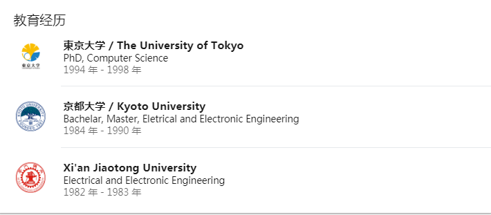 他硕士毕业于日本京都大学电气工程系,之后又在东京大学取得计算机科学博士学位。
