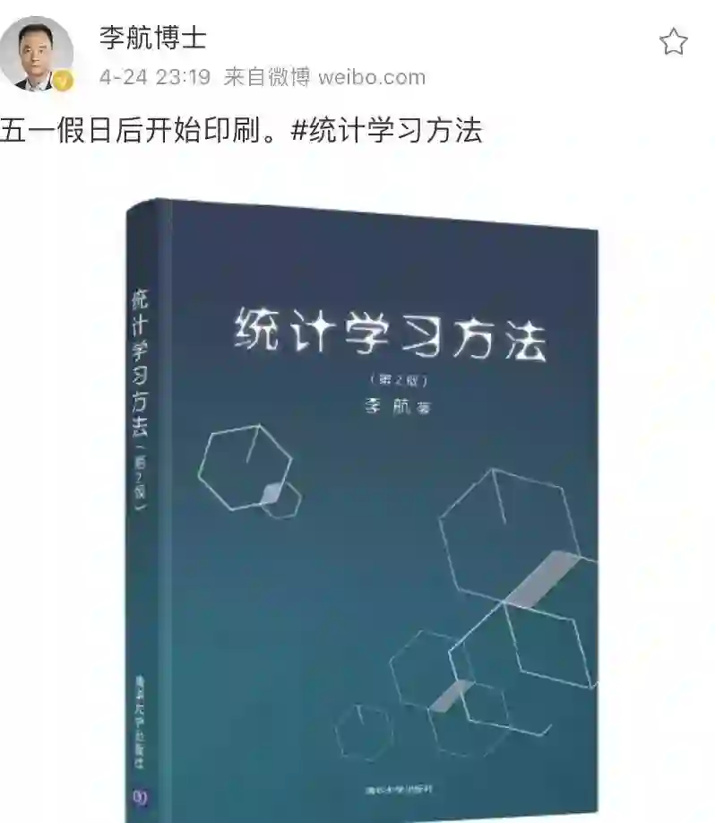 对于普通机器学习入门者来说,李航博士的名字也并不陌生,他所编写的《统计学习方法》一书,可谓是机器学习入门的宝典,今年 5 月份刚上线了第二版。