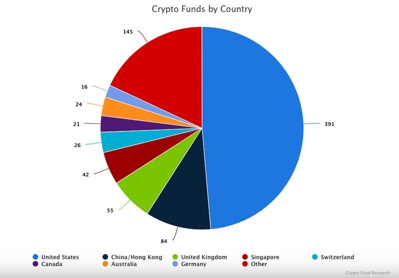 几乎一半 Crypto Fund 都位于美国。英国、中国/香港、新加坡、瑞士、加拿大、澳大利亚和德国都有大量的基金。东欧和俄罗斯也开始出现新的 Crypto Fund,开曼群岛等离岸司法管辖区也是如此。