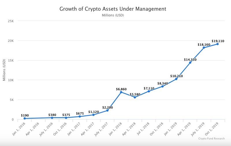 Crypto Fund资产规模增长状况(2016年—2019年,单位:美元)