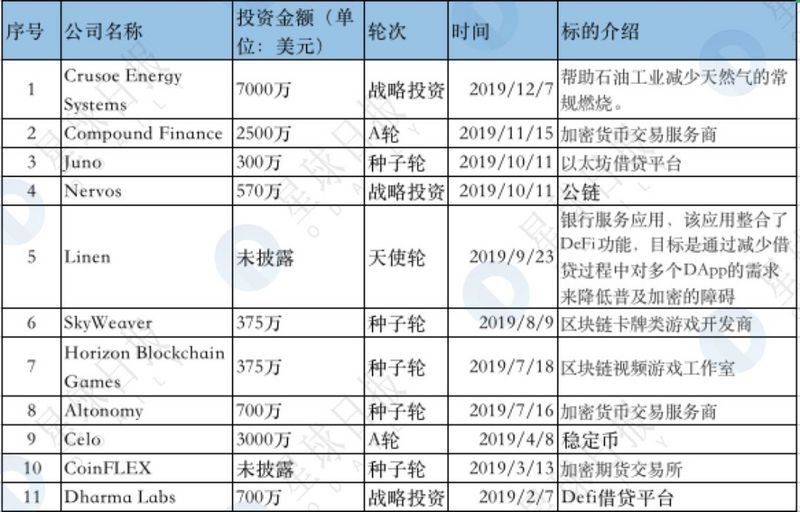 另外从梳理中也可以发现,Defi 借贷项目 BlockFi、Juno、Dharma 获得上述所列举的多家主流加密基金青睐,说明 Defi 是机构投资者抢滩的重要赛道。