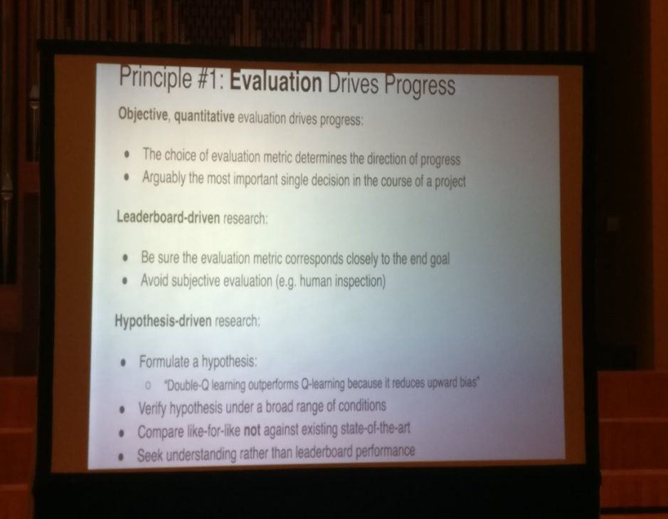 这10个原则是一位来自Insight数据分析研究中心的博士生Sebastian Ruder在参会期间对David Silver报告进行的整理,除了Ruder自己的解析外,也把他自己拍的照片分享了出来。