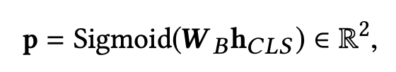 与特殊标记 [CLS] 连接起来作为 BERT 的输入,通过判断输入序列是否正确,BERT 可以充分融合三元组的语义信息,这个分类任务的概率分布表示为: