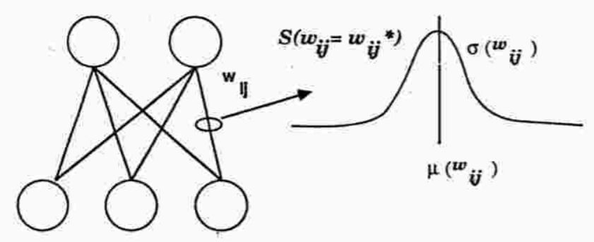 如图 1 所示,我们按照图中的方法实现采用均值为 µwij、标准差为 σwij 的高斯随机变量的 SDR 算法。因此,将从高斯随机变量中采样得到每个权值,作为一种前馈运算。实际上,与 Dropout 类似,指数级别的网络集合通过训练期间的更新采样获取。与 Dropout 在这一点上的区别是,SDR 会调整每个权重上附加的隐藏单元的权重和影响,以便在更新时随误差梯度自适应地变化。这里的效果也与 Dropout 相类似,除了每个隐藏单元的响应会分解到权重上(与分类误差对信用分配的影响成比例)。因此,每个权重梯度本身也是基于隐藏单元预测性能的随机变量,它让系统能够:(1)在相同的例程/刺激下接受多值响应假设,(2)保留一个预测历史,与 Dropout 不同,Dropout 是局部的隐藏单元权重,在某个集合上是有条件的,甚至是一个特定的例程(3)可能返回由于贪婪搜索得到的性能较差的局部最小值,但是同时也远离了更好的局部最小值。局部噪声注入的结果对网络的收敛具有全局影响,并且为深度学习提供了更高的搜索效率。最后一个优点是,如 G. Hinton 所说,局部噪声注入可能通过模型平均平滑误差表面的沟壑,使模型能够更快更稳定地收敛到更好的局部最小值。