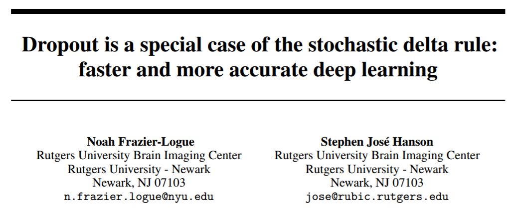 论文:Dropout is a special case of the stochastic delta rule: faster and more accurate deep learning