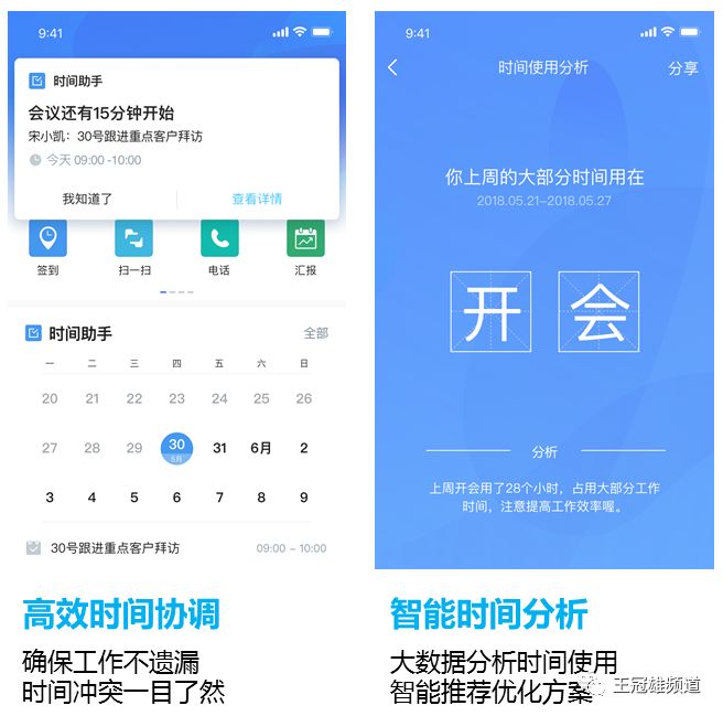 “时间助手”应用解决了效率问题。时间助手可记录管理个人日程并自动提醒;通过日程共享,可实现团队成员时间安排的透明化;通过主动“抢占”领导和同事的时间,可提升整体协作效率。