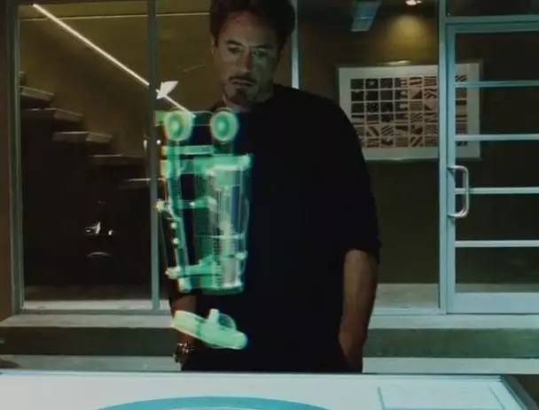 上图截图自电影《钢铁侠》,主人公可以看到虚拟的物体叠加在空中。我们先不管电影中的效果可以用哪些现实手段实现(全息投影也好,真三维光学全息也罢),我们只考虑如何采用光学透射式增强现实来实现它。