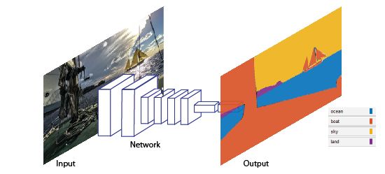 分割对图像分析是必不可少的。语义分割描述了每个像素与类别标记的关联过程,(例如:花朵、人物、道路、天空、海洋、或者汽车)。