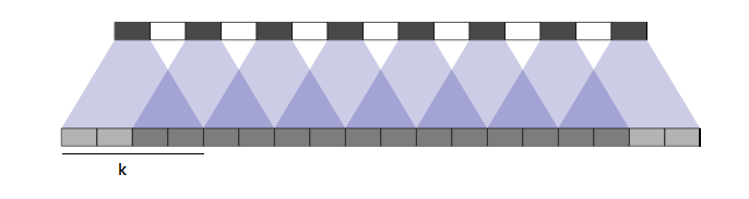 保持 k 不变,增加步长减少重叠。这种重叠指的是由相邻的内核行为计算的公共区域。让我们想象一下相反的效果。