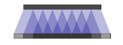 让我们更多的讨论下 Valid 填充。当增加 kernel 步长时,输入图像会在像素之间填充。如果步长是 2,会在现有行列之间再分别增加一行和一列。如果步长是 1,不会做任何填充。