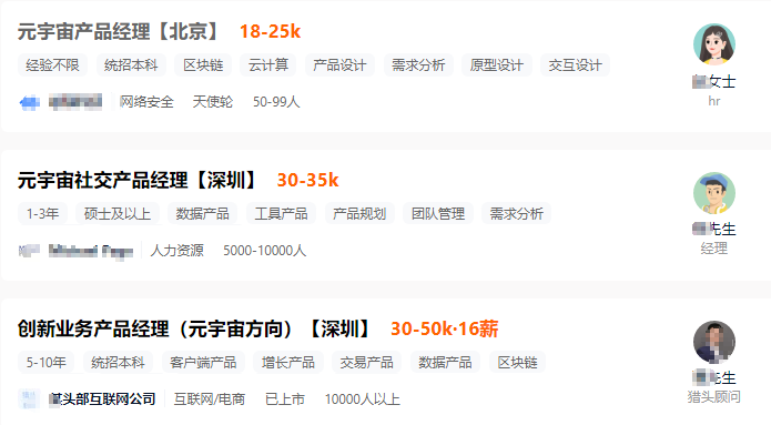 关于元宇宙产品经理岗位的招聘和薪资情况,小编也实际去搜索了一下,发现根据不同的经验要求,职位待遇差距则比较大,年薪从20万元到80万元不等。
