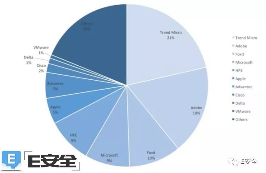 2016年, Adobe漏洞公告(相较于其它任何单一厂商)在零日倡议项目当中获得最高贡献数量荣誉。2017年这一桂冠被趋势科技的母公司Trend Micro夺得,21%Bug赏金项目中披露的漏洞都是由该公司提供。第二名则是Adobe,其贡献了全部发布漏洞中的18%。紧接着是Foxit,提供的漏洞数量占比10%,而微软与HPE则各自贡献了9%的漏洞公告。