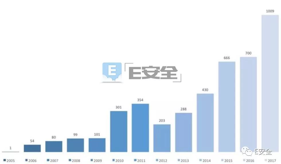 E安全1月10日讯 趋势科技作为全球规模最大的中立Bug赏金项目支持方,对其2017年ZDI(零日计划)收录的漏洞情况进行了总结,该Bug赏金项目在2017年发布了高达1009项漏洞公告,远高于2016年的700项。相比2016年,2017年的漏洞净增数据量就已经超过了2013年全年的零日漏洞发现量。