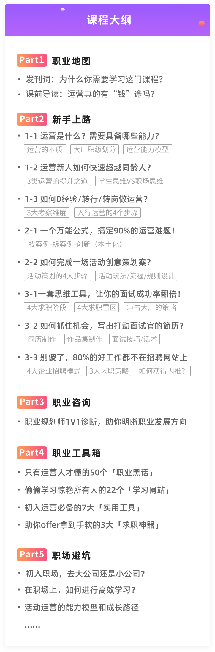 2、帮你搭建运营知识体系,弥补技能缺失