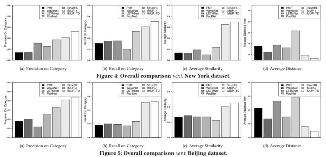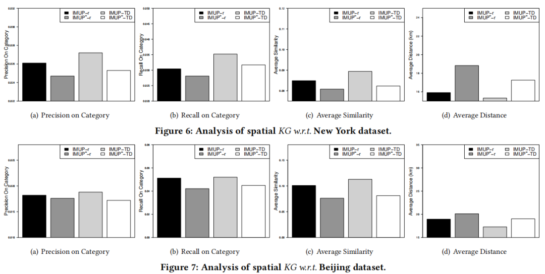 (2)空间知识图谱在建模用户表示方面的贡献(IMUP-表示仅将用户和POI表示作为环境状态,而其他组件保持不变)。实验表明,“ IMUP”的性能都优于“ IMUP-”。结果证实,来自空间KG的语义集成确实增强了访问事件中用户偏好的建模。同时,增量更新的下次访问计划者(代理)被强制从空间KG引入语义,以模仿个性化的用户模式,并与增量更新的用户表示(状态)保持同步。