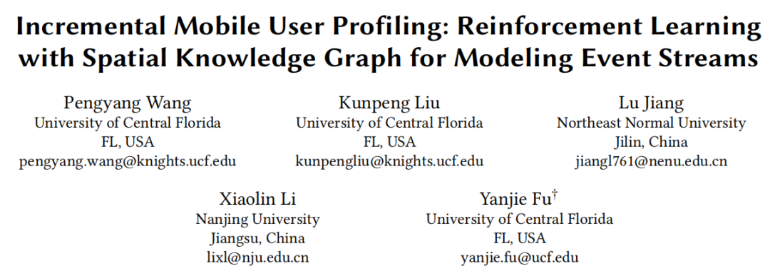 题目: 增量移动用户分析:用于事件流建模的空间知识图谱强化学习方法