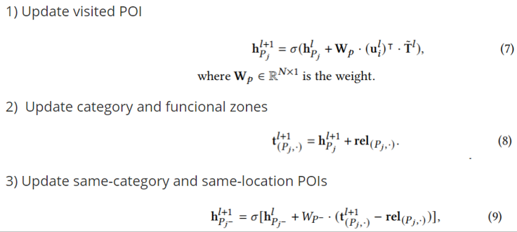 (1)针对用户,我们基于用户和空间知识图谱POI之间的交互来更新用户状态。