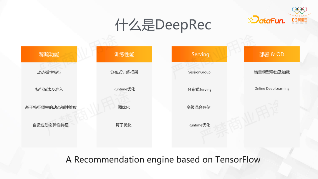 因此我们提出了 DeepRec,其功能定位在稀疏场景做深度的优化。
