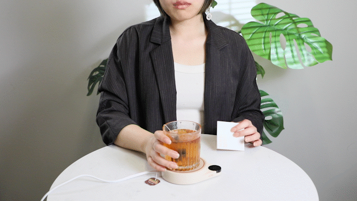 现在这种加热杯垫也蛮火的,我适用了一下确实挺保温。泡一杯茶,放上去基本上能保证它一下午都是热热的,而且可以设置75、65、55度三档温度调节,充分满足对于烫水、温水、温温水的各档水温入口的要求。