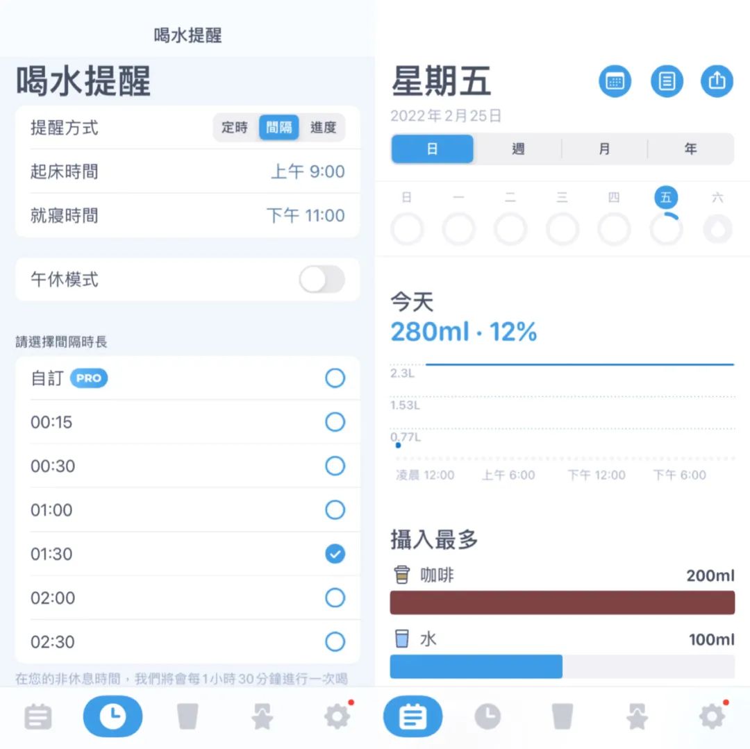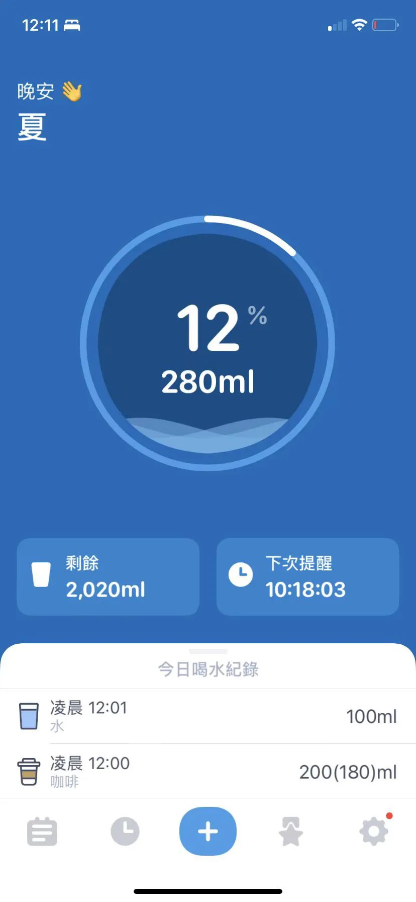 基本上这类APP的核心功能就是记录喝水量以及提醒你该按时喝水了。