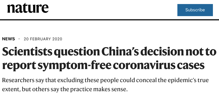 下面和大家分享Nature今天的一篇新闻,题为“Scientists question China’s decision not to report symptom-free coronavirus cases”,请科学家们分享自己对于“