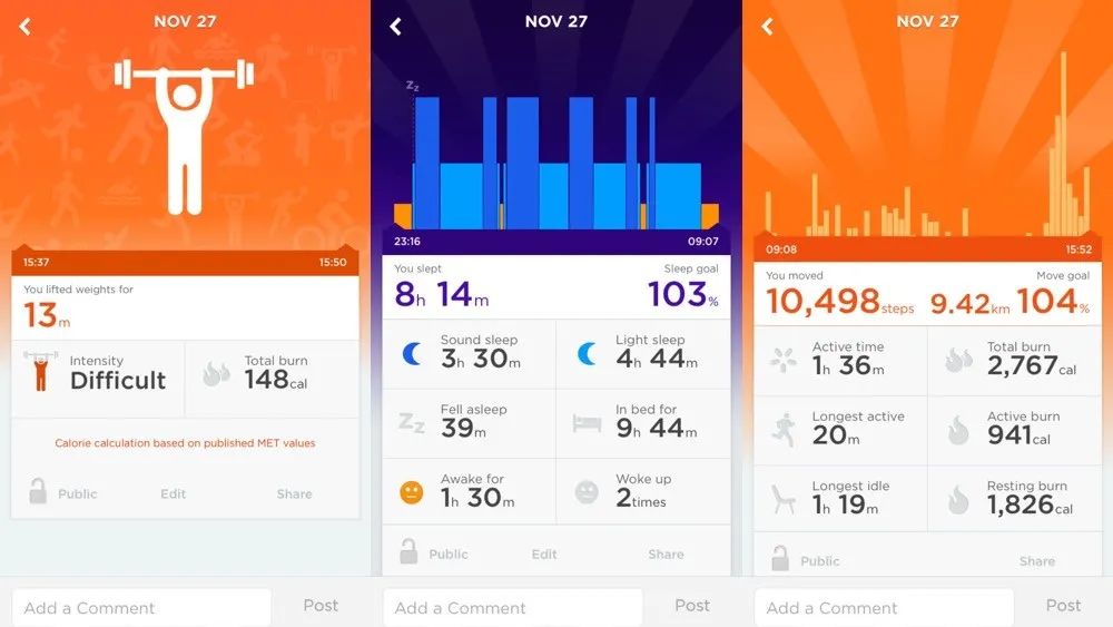 从产品的角度来说,作为鼻祖的 Fitbit Flex 还是有点东西的,腕带加上一个可拆卸的数据追踪传感器,奠定了后续这么多年来智能手环的基本形态。而且在 2011 年的时候,就已经涵盖了计步、记录卡路里、睡眠监测、手机 APP 联动等诸多功能,5-7 天的续航时间也没有太多的充电依赖。