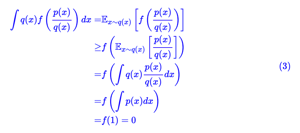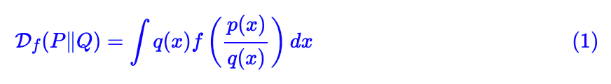 首先我们还是对 f 散度进行基本的介绍。所谓 f 散度,是 KL 散度的一般化: