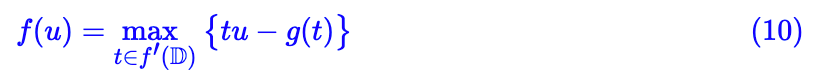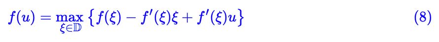 对一个凸函数给出了线性近似,并且通过最大化里边的参数就可以达到原来的值。