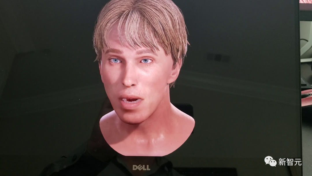 他先是扫描自己的脸部,生成了一个3D的虚拟动画人像。在需要公开讲话的时候,他就会在胸前的屏幕上展示这个形象。