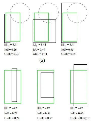 可能存在相同的l1 或 l2 loss(如下图),但是IOU不唯一。
