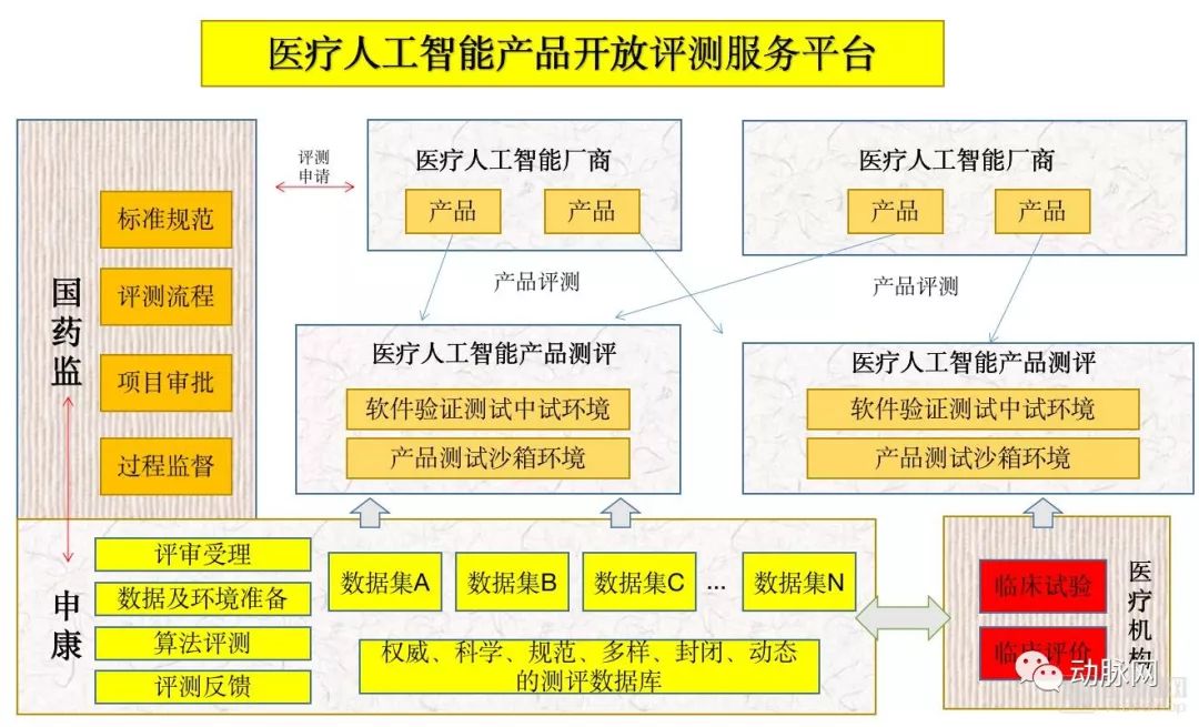 同时,申康中心还将建设人工智能产品具体测评平台,其工作运行方式由下图所示。