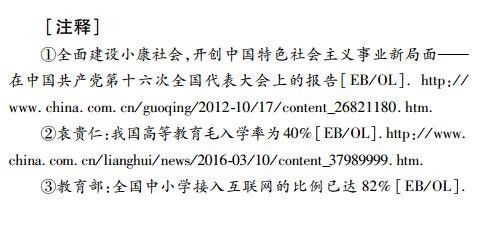 据统计,2016年我国九年制义务教育巩固率为93.4%,高中阶段毛入学率为87.5%,这一数字正在逐年提高(国家统计局,2017)。高等教育毛入学率2016年达40%,进入世界中上行列,逼近高等教育普及化阶段②。全国中小学互联网接入率2015年达82%③,2016年6月已达87.5%(教育部,2016)。互联网的接入,进一步扩大了普通教育的对象,彰显了教育公平的原则,体现了终身学习理念、保障学习权利的基本主张。