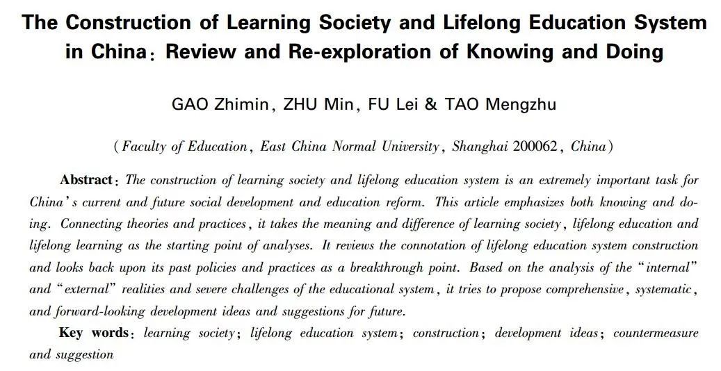 作者简介:高志敏,教授,博士生导师,华东师范大学教育学部职业教育与成人教育研究所,研究方向:成人教育、终身教育理论与实践;朱敏,华东师范大学教育学部职业教育与成人教育研究所讲师,教育学博士,研究方向:成人教育、终身教育理论与实践;傅蕾、陶孟祝,华东师范大学教育学部职业教育与成人教育研究所博士研究生,研究方向:成人教育、终身教育理论与实践。