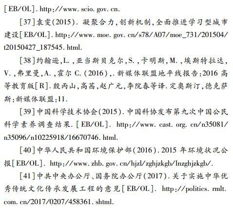 2016年我国国际科技论文数量稳居世界第二,国内专利申请量和授权量位居世界第一和第二。其中,国内发明专利拥有量首超100万;国家研发支出占全球比重20%(居世界第二);基础研究国际影响力大幅提升;国家创新能力排名预计世界第18位;科技进步贡献率预计达551%,尤其是部分战略高新技术领域,如超级计算机、深海探测、载人航天、探月工程、卫星导航、高速铁路等都有明显进展和突破(科技部,2017)。但迄今为止,我国公民科学素养整体依然堪忧。2015年的调查显示,我国具备合格科学素养的公民比例为6.20%,其中位居前三的上海、北京、天津,虽分别为18.71%、17.56%、12.00%,但也仅为欧美世纪之交的水平;此外,科学素养在性别、城乡、群体、年龄等方面还存在明显差异,尤其是女性、农民、老年群体的科学素养明显偏低(中国科学技术协会,2015)。整体科技水平实力的提升和部分领域前沿科技的明显进步,给各级各类教育活动的开展提供了充足的学习素材,更新了终身教育体系所涉及的知识领域。但是,我们似乎还没有足够的能力将这些科技成就向民众广泛传播与普及,资金短缺、资源分配不匀、专职人员不足、科普活动弱化等长期没有得到显著改善。