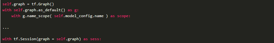 为了更好地隔离模型,并确保它们不是全部都在相同的Tensorflow图下,我们使用下面这个比较有用的结构: