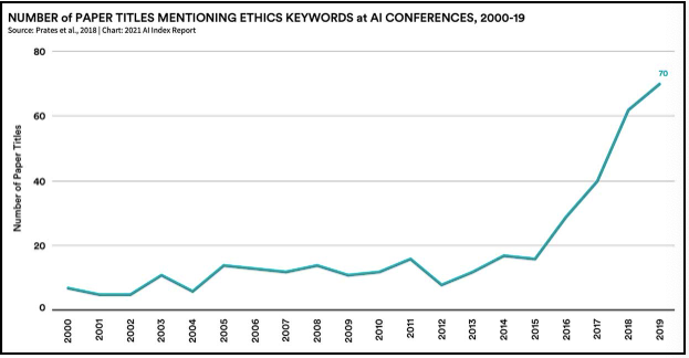 图表显示了在一些AI会议上,有关与道德相关的论文越来愈多,这是令人鼓舞的。但是在人工智能行业中对于伦理偏见有关的定量测试才刚刚开始出现,今后有望成为AI科学领域新的组成部分。