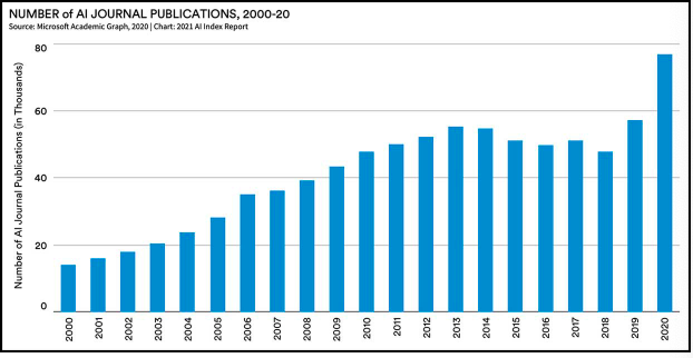 根据2021年的AI指数报告,由斯坦福大学的人工智能研究所制作的222页文档中包含了大量的数据和图表,本文将选取15个图表具体解释一下全球人工智能的当前状态。