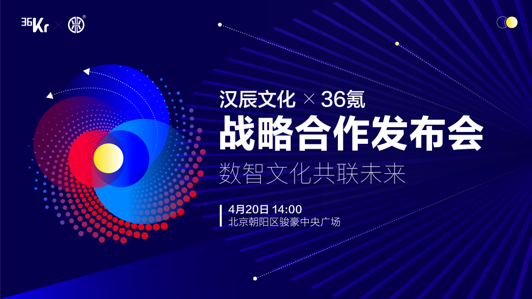 事实上,作为人类永恒探索的两大命题,科技与文化的碰撞、交织与融合,甚至决定了人类的历史走向。在这一背景下,4月20日,36氪将与汉辰文化发展集团有限公司(简称“汉辰文化”)一起,在北京举办一场以“数智文化共联未来”为主题的战略合作发布会,打通双方在文化、科技领域的优势资源,实现合作双赢。